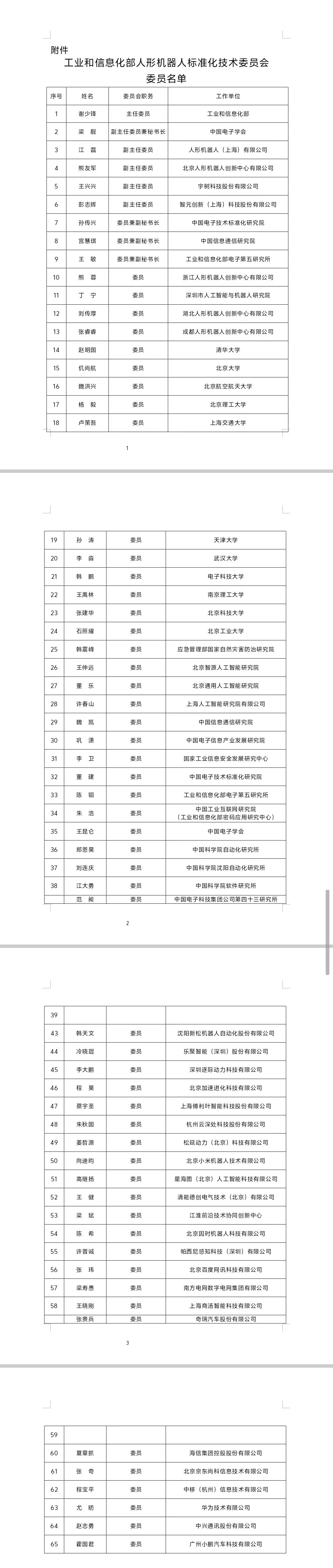 凤凰网科技讯 11月24日,工业和信息化部公示了人形机器人标准化技术委员会委员名单。名单显示,宇树科技股份有限公司创始人王兴兴、智元创新(上海)科技股份有限公司联合创始人彭志辉任副主任委员;此外,小米、百度、华为、中兴、小鹏等企业人员也在名单之列。