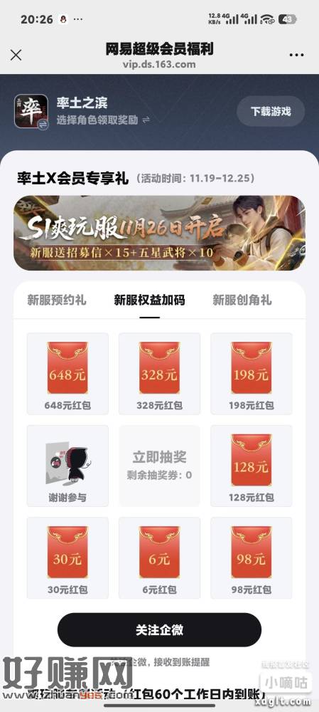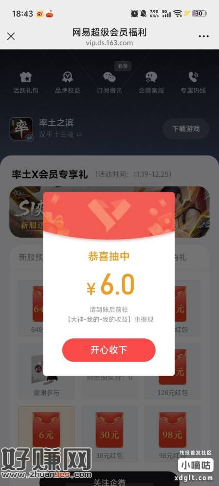https://vip.ds.163.com/portal/g/ ... tatusBarStyle=white预约直接抽中了6但是还没到,可以先抽一下