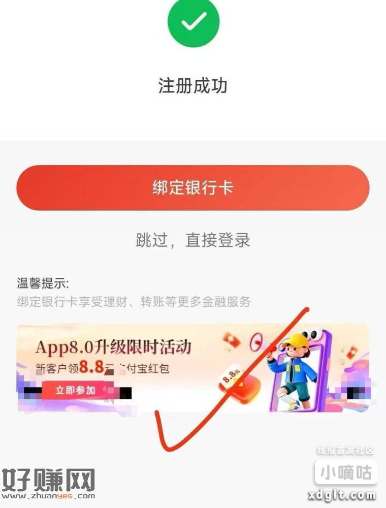南京银行app 注册领8支付宝红包,不秒到。多号填同支付宝没卡也能玩 不需要实名 注册就能领 不用管实茗,直接登记就行了不能填同一zfb
