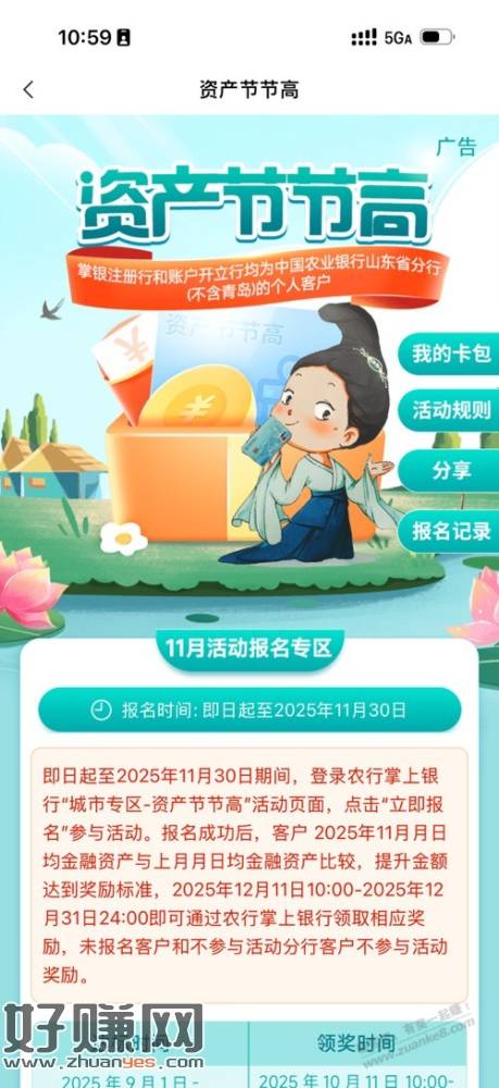 路径:农行APP-生活-城市专区-上方横幅5000块钱和500000w档位比较值,大佬可以这个月做5000,下个月做500000