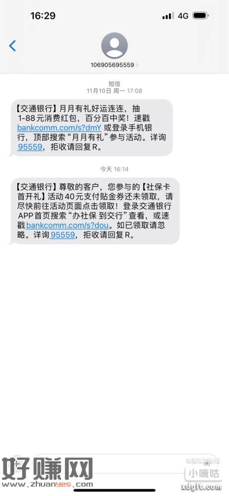 破零不记得什么时候开的了 今天突然看短信看到有短信 【交通银行】尊敬的客户,您参与的【社保卡首开礼】活动40元支付贴金券还未领取,请尽快前往活动页面点击领取!登录交通银行APP首页搜索“办社保 到交行”查看,或速戳bankcomm.com/s?dou。如已领取请忽略。详询95559,拒收请回复R。