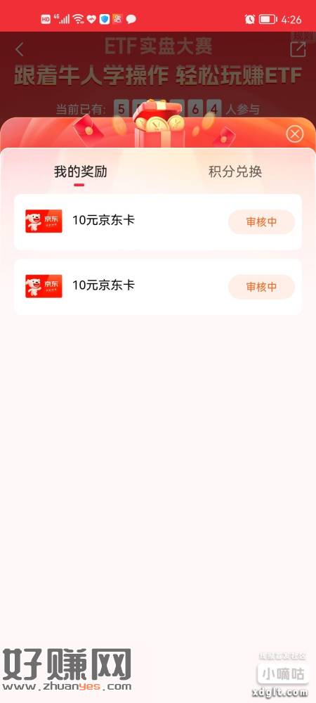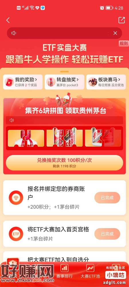 同花顺APP,ETF实盘大赛-转盘抽奖,现在去抽,可能有点小水,我中了2张10块京东卡