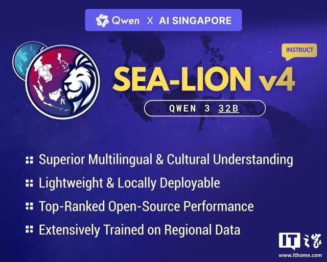 IT之家 11 月 25 日消息,阿里巴巴集团旗下的阿里云于 11 月 24 日宣布,将为新加坡国家人工智能计划(AI Singapore,简称 AISG)最新版本的“Sea-Lion”大语言模型(LLM)—— 即 Qwen-Sea-Lion-v4 提供技术支持。值得一提的是,AISG 此次是放弃了 Meta 模型,转向阿里巴巴的通义千问 Qwen 开源架构。
