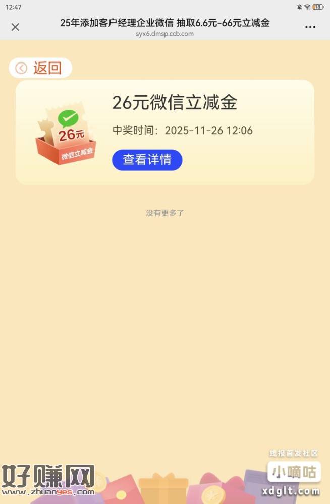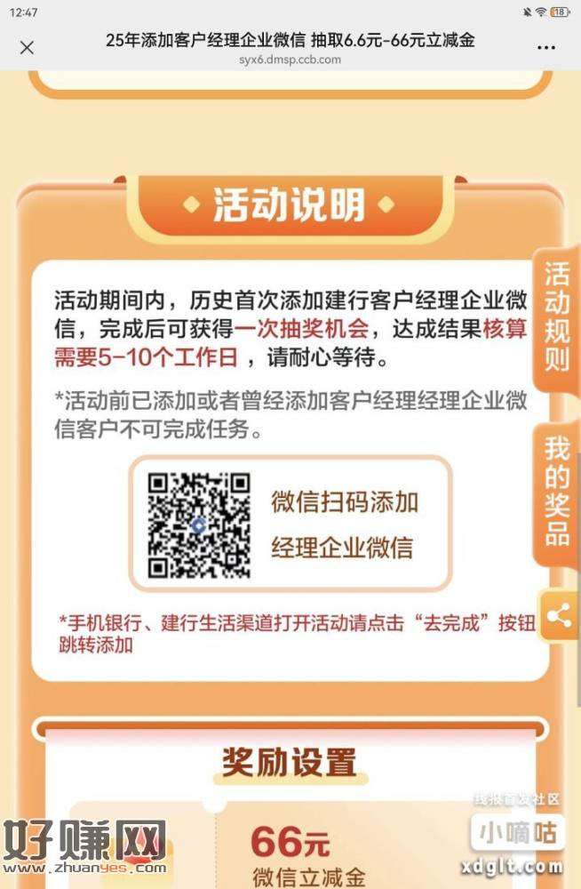 V扫 建行,加企微抽奖。我以前也加过,22号重新加的新的企微,今天刚达标,自测