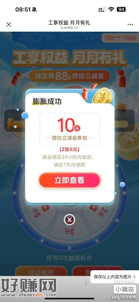 广州工行卡,左一进去-月月权益,直接抽,抽到1添加客服膨胀可以成两张20-5立减金