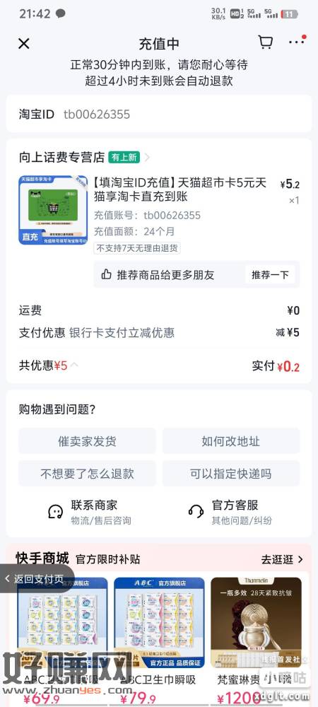 0.2充值5猫卡 需要的去快手或者快手极速版 快手小店搜索“天猫超市卡5”选择添加银行卡支付 部分银行有减5的