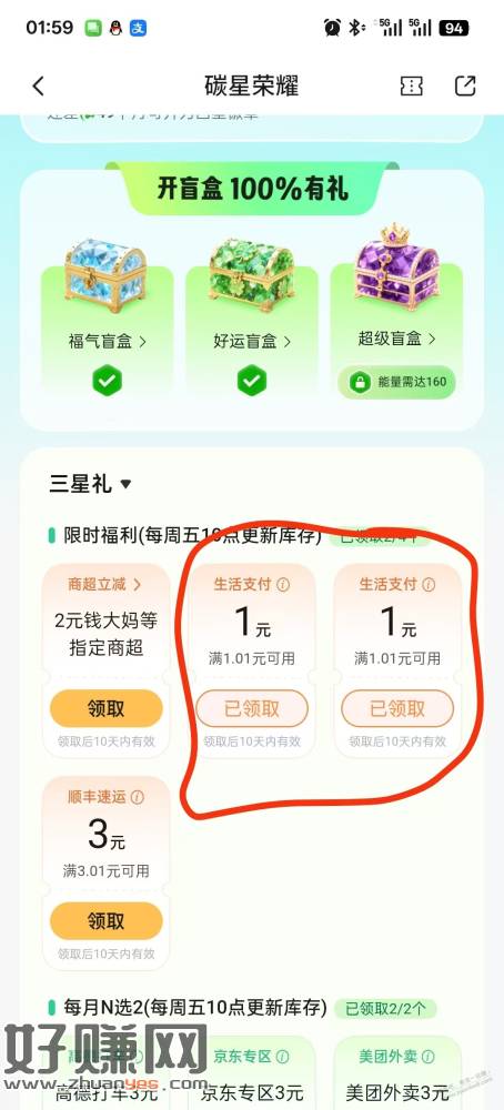 交通搜月月有礼,下拉任务能做几个做几个,能中5元码套交行,碳星荣耀那个生活支付,这会也能领那个旁边的消费抽抽抽也可以去,抽三次