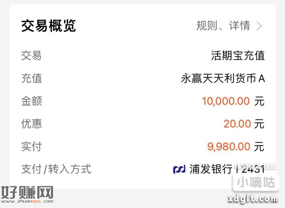天天基䋮app 自测绑浦发一类咔送20卷,可以充埴活期寶抵扣,次日可取出