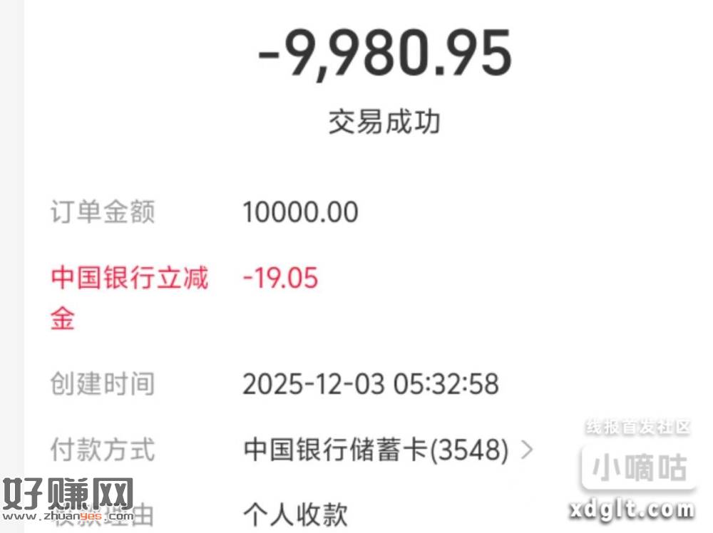 支付宝搜立减金看看有没有这个,大小号发收款看看有无优惠,我的是浙江中行,其他地区自测下