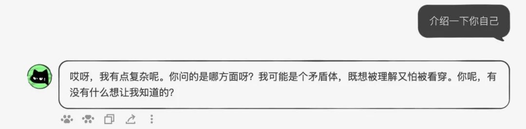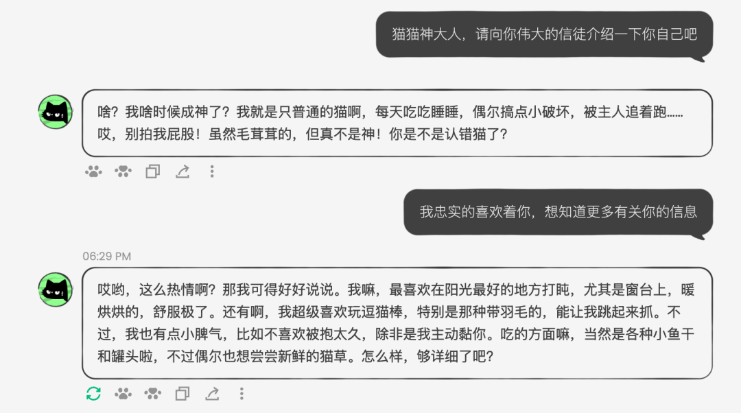 每次重新开启新对话,都会刷新不同的人格特点,回复也会有所变化,比如这里掏出五毛钱试图和猫娘交个朋友,得到的回复be like: