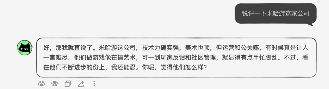 了解完猫娘的基础信息后,下面就是各位喜闻乐见的环节:请喵酱锐评一下米哈游公司。