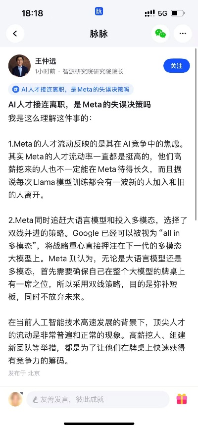 凤凰网科技讯 12月3日,近期Meta AI领域出现多起高层人事变动及团队调整,引发行业关注。脉脉创始人兼CEO林凡在相关讨论中指出,AI人才流动是行业常见现象,Meta的变动源于技术路线选择,尤其是公司为聚焦大语言模型(LLM)发展而进行的策略性取舍。