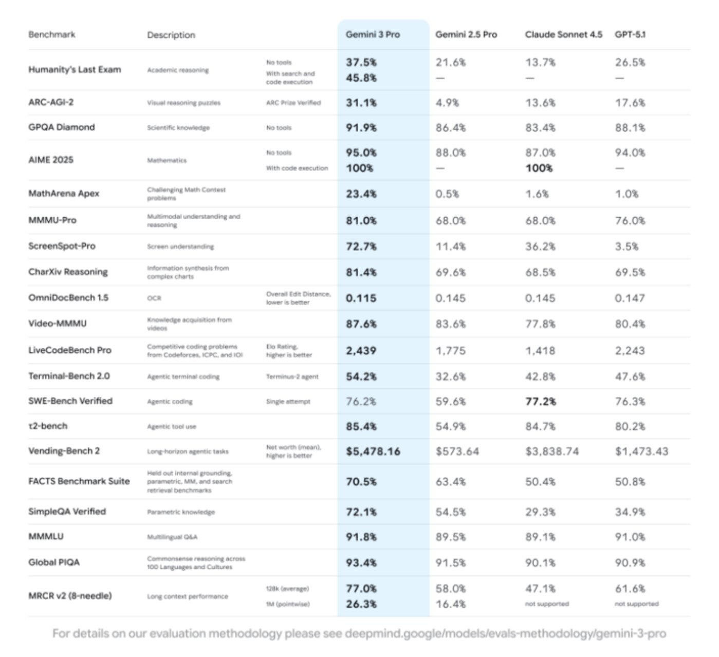 两年后的今天,当Gemini 3横空出世,多项指标超过GPT-5.1,谷歌终于扬眉吐气。