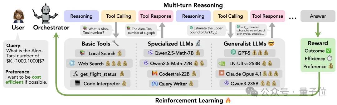 能让小模型精准协调这么多工具,全靠英伟达的ToolOrchestra训练大法。