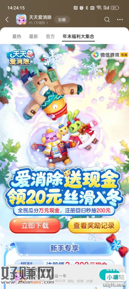 微信,游戏,天天爱消除,年末福利集合,自己搜索