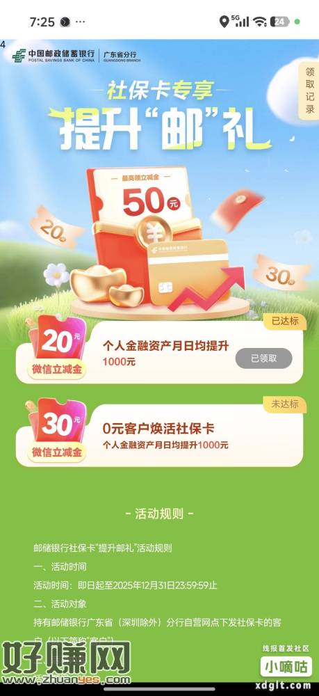 https://u.psbc.com/4HvwwN广东社保卡,达标礼,20大毛