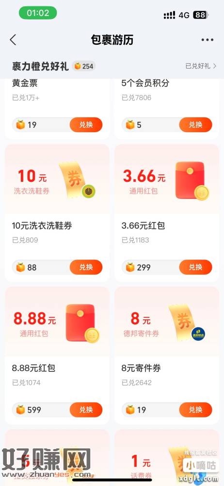 支付宝我的包裹-包裹旅历,每天可以得90果粒橙,差不多7天可以得8.8红包
