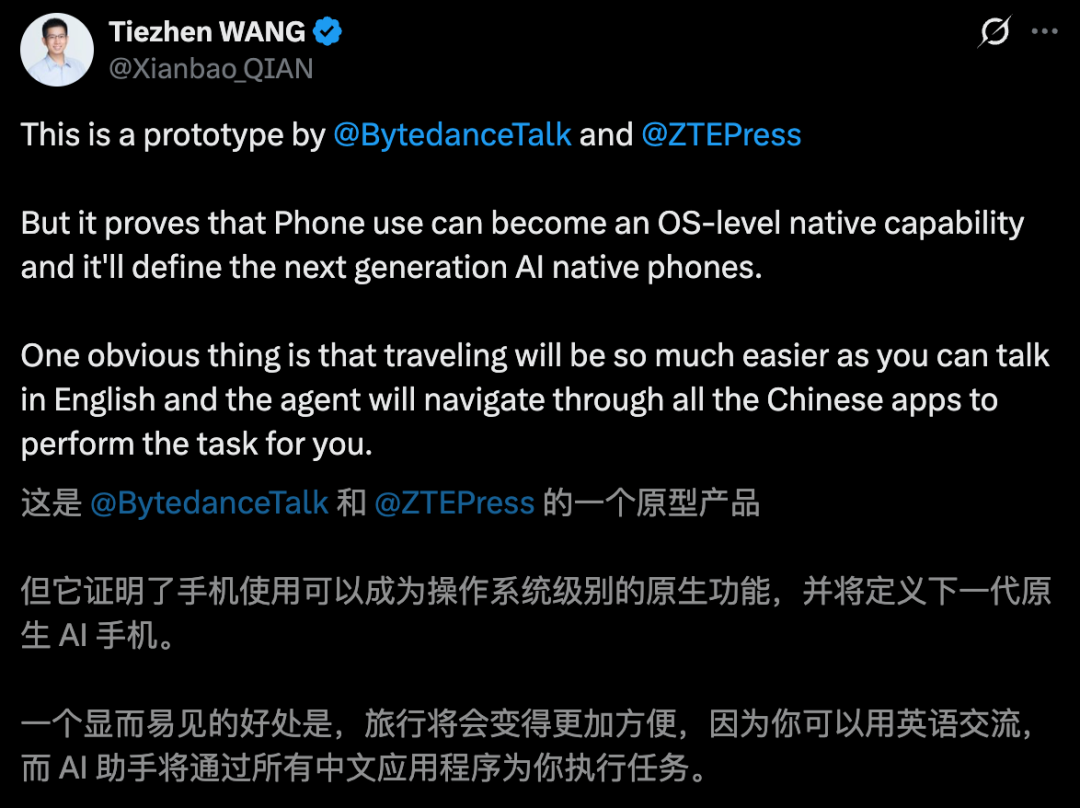 Hugging Face亚太生态负责人Tiezhen Wang点评,它证明了手机使用可以成为OS级原生能力,并将定义下一代AI手机