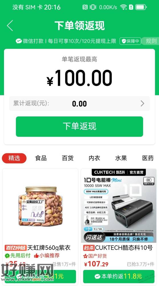iPhone用合适,长虹三杰电芯,最高只支持55W充电,胜在便宜,重量轻先浏览商品,拼多多APP,搜索,超级满减,点击整点抢券,点击兑超值券,做任务用1张减减卡兑换7折优惠券;拼多多APP,搜索,抽100,下单