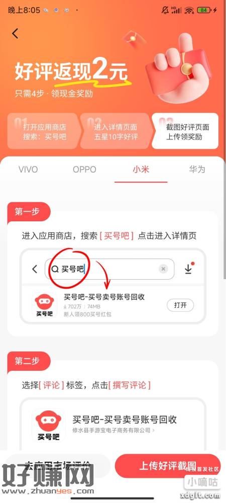 vivo 小米 oppo 华为手机用户 应用商店下载 买号吧app 先点设置 实名 绑定微信和支付宝收款账号 主页活动应用商店10字以上5⭐好评上传 审核通过后得2米