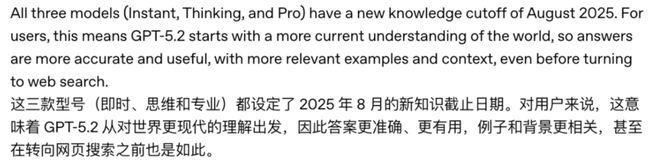 现在的 GPT-5.2,则是要在这些优势的基础上,打造出更可靠的生产级模型。而且有一个非常重要的细节:这次推出的三款 GPT-5.2 模型,底层知识库都已经完成了更新。