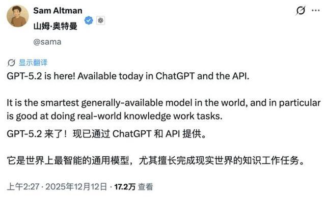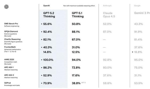 本以为 OpenAI 会专注提升 ChatGPT 的个性化和消费者体验,结果 GPT-5.2 的发布方向依旧是走职场实用主义的路数。