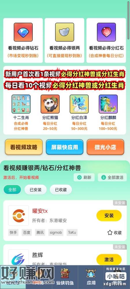 仙侠时代新人鱼上有人收行情目前一个人头6-12块左右(关键是你要看几天广告,也就是包活跃几天)走他链接下载登录实名看10个视频,这里面的银两和砖石超级有用,我设备黑了看了60多个才给10(这个10自己提的,也可提2)