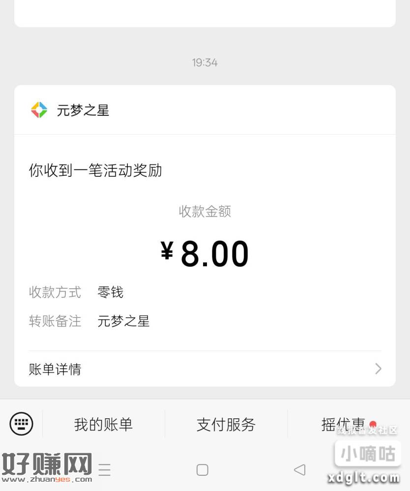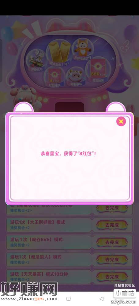 OPPO游戏中心搜元梦之星,点进去抽奖,第一次就中了8红包