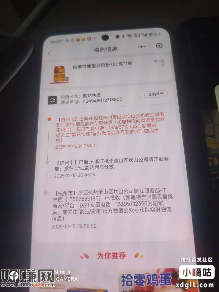 另一个soma,发货了,这玩意注册要9.9,悬赏平台一般佣金11块左右,他的货真的发