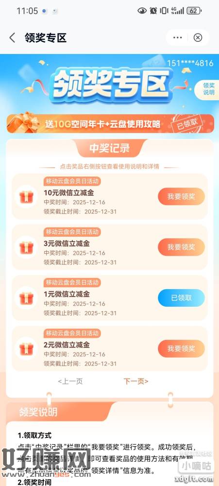 移动云盘会员日,20+,宠爱礼直接领5,中间抽奖我中了2,底部邀人还有货,拉8人13立减(自测)