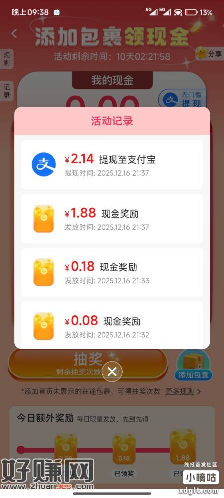 菜鸟裹裹APP 首页轮播图或者我的 底部添加7个包裹得1.88 刚弄