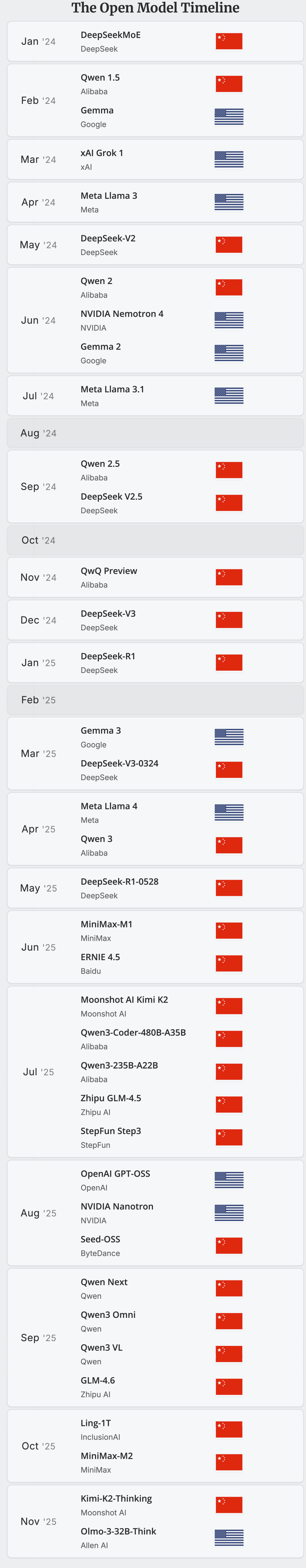 上下更多内容,全球开源模型发布历史,2024.01-2025.11,