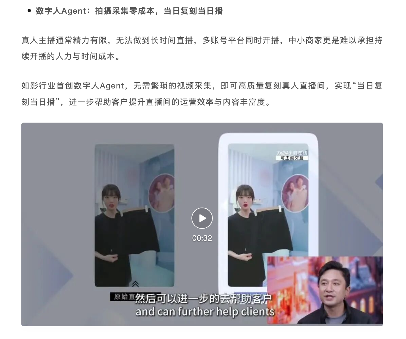 其中,如影数字人Agent,无需繁琐的视频采集,即可高质量复刻真人直播间,实现“当日复刻当日播”,有助解决真人主播精力有限,中小商家难以承担持续开播的人力与时间成本的痛点。