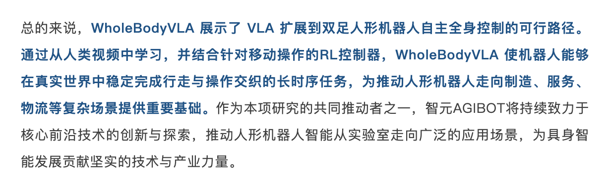 凤凰网科技讯 12月17日,让人形机器人能够像人一样完成装箱、搬运、推车等移动操作任务,一直是人们对具身智能的期待。近日,来自香港大学、智元AGIBOT、复旦大学和上海创智学院的联合研究团队提出了WholeBodyVLA,一种面向真实世界的人形机器人全身 Vision–Language–Action框架。该工作基于智元灵犀X2研究发布,将VLA扩展至双足人形机器人的全身控制,验证了其在全身loco-manipulation任务中的可行性。