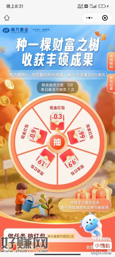 南方基金推文,进去做任务三次机会必中。手慢无。