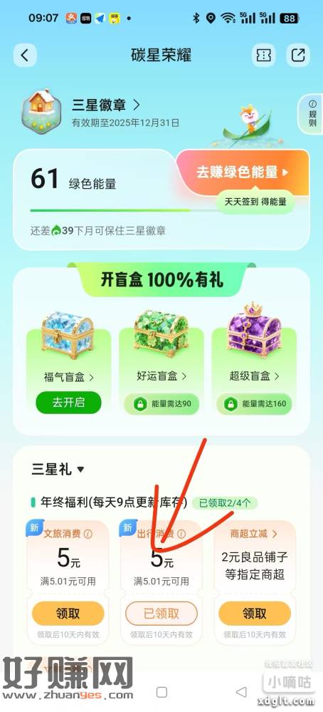 交行-我的-签到-碳星荣耀领5券 代充优酷周卡闰4+