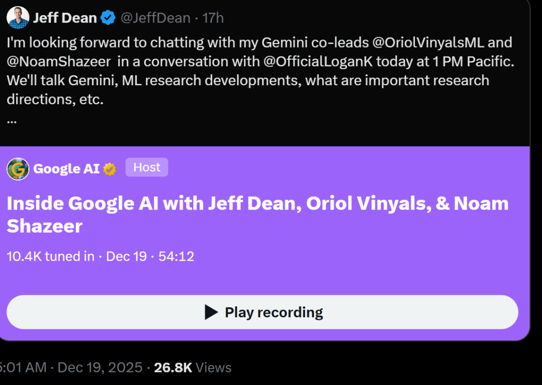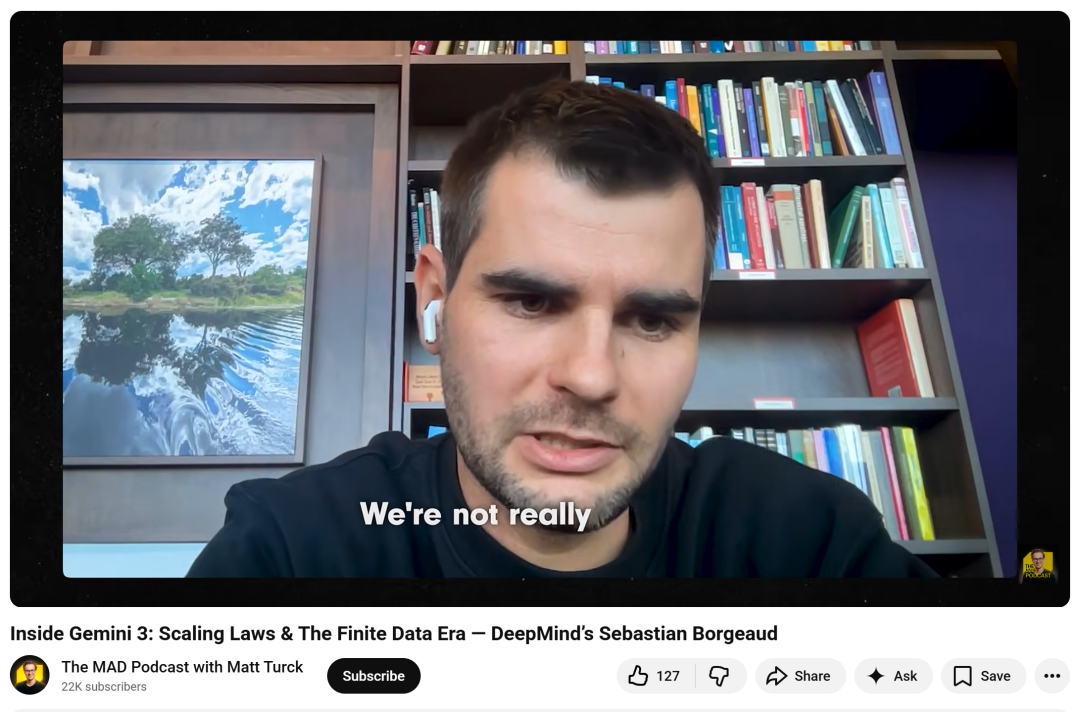 同时,Google Gemini三巨头——Jeff Dean、OriolVinyalsML和Noam Shazeer罕见同台了,他们的对谈中,跟Sebastian的内容展现出了惊人的一致。