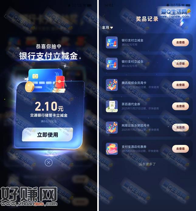 抽银行卡红包/视频会员/代金券/打车券等奖励