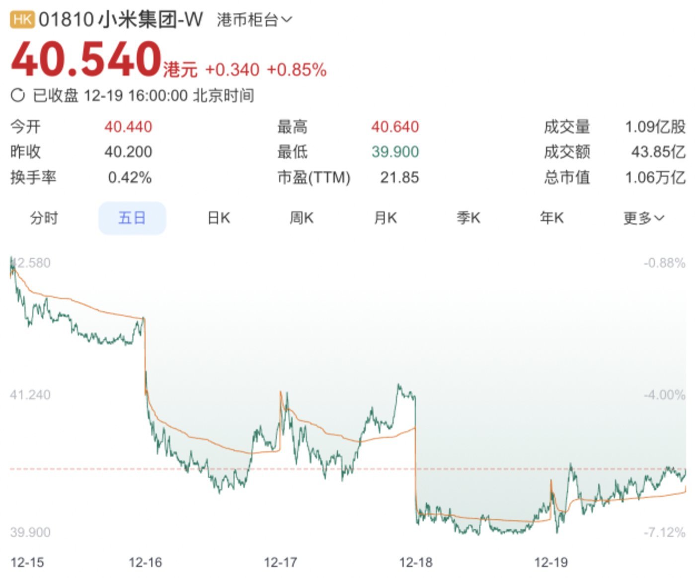 不过,从资本市场的角度来看,小米在 12 月 17 日的股价并没有因为其对外释放的研发成果而出现明显的回升,甚至在此后两天还出现了一定的下行——从资本市场的反馈来看,至少到目前为止,外界对于小米加码硬核科技、加码研发投入的叙事逻辑还并不买单。