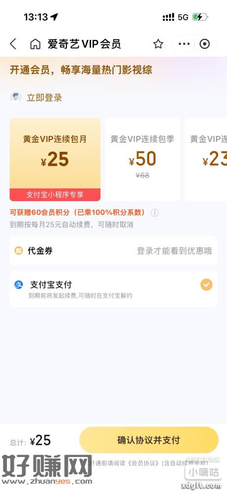 忮苻寶咔苞领25-16爱奇艺卷充会员月咔到手9亓开完手动取消自动续㵒就行