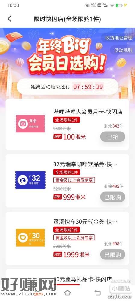 三湘银行100湘米兑换或者1块购买哔哩哔哩大会员可以闲鱼上出10几润。