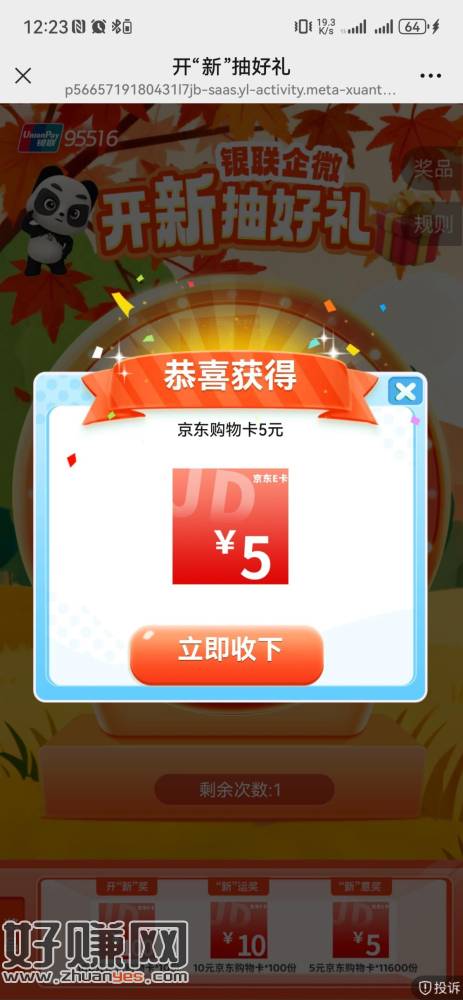 扫码参加活动,点抽奖,会跳出要添加企微,添加后可抽,我中了5元e卡