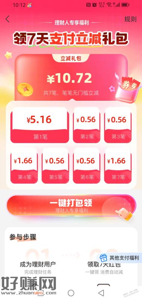 支付宝搜支付有礼,下拉看看有没有个10块钱的参与活动,买稳债1000七天就行