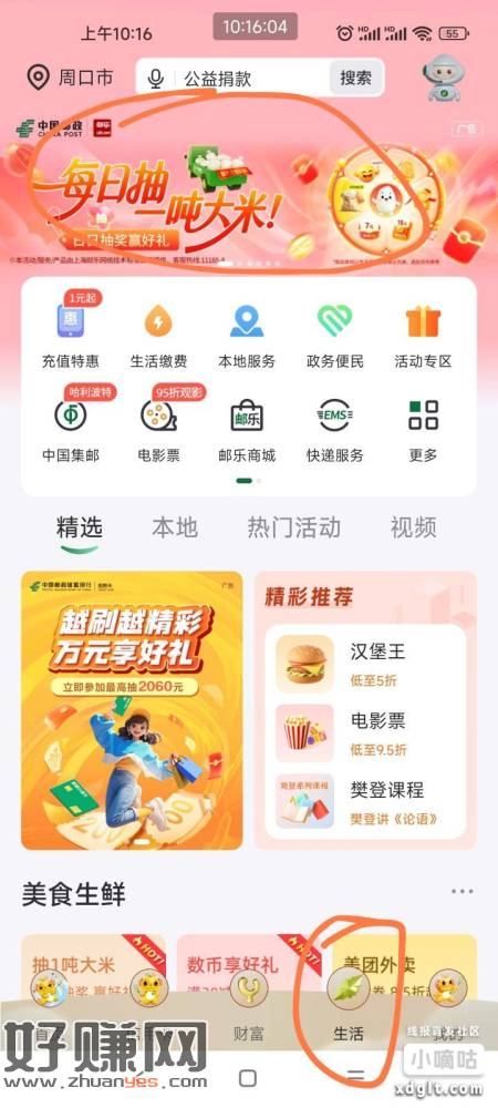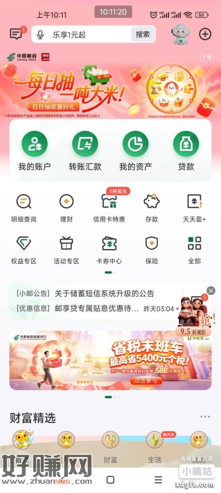 邮储首页,或者生活首页,抽大米,每日可抽,不知道限不限地区,自测