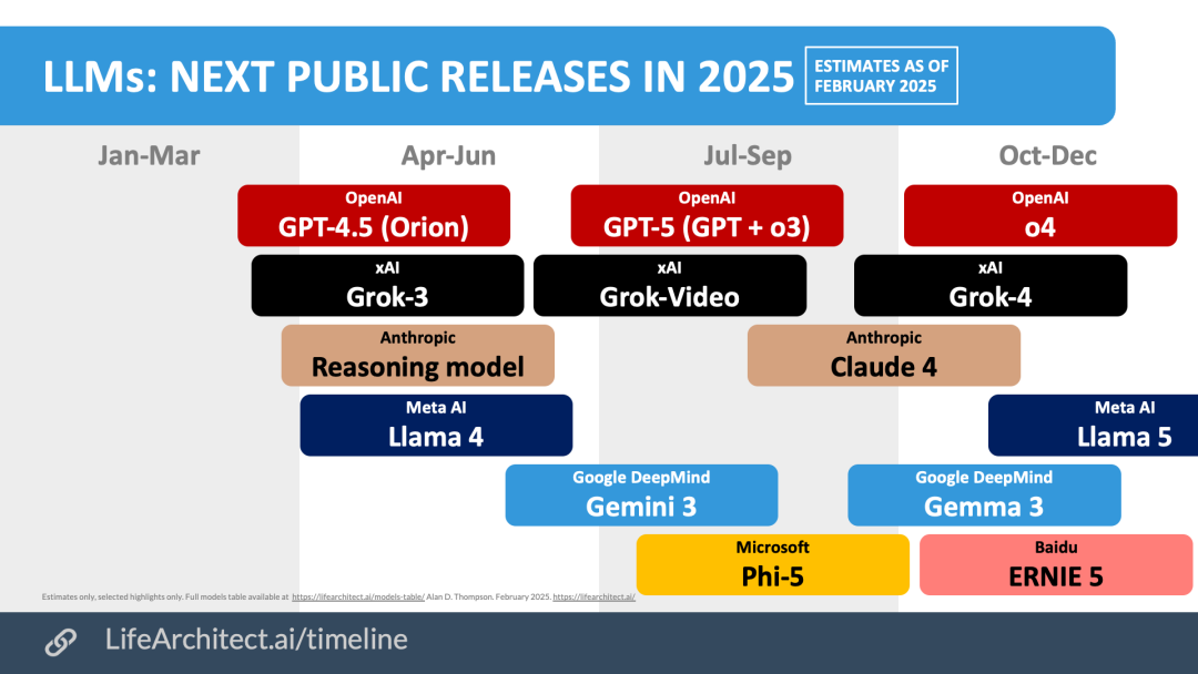 翻开 LifeArchitect那张2026预测图,你会发现一个难以忽视的巧合:几乎所有主要玩家,都在这一年的窗口期标注了「Next」。