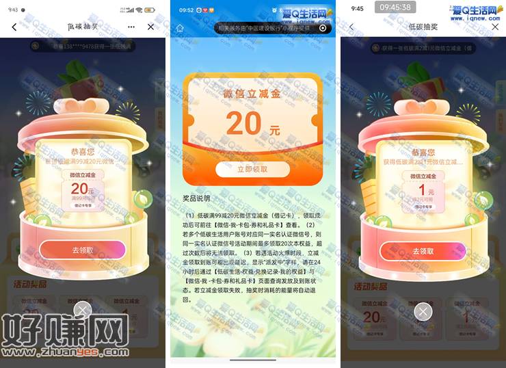 建行低碳生活抽奖 亲测20元微信立减金