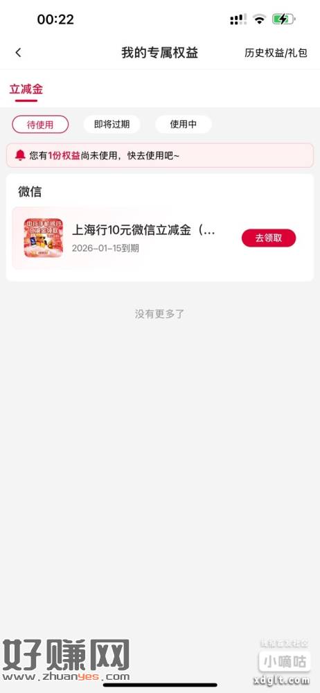 中行停在上海的可以去看看 我的权益 自动送的上个月送了一张10 刚刚又一张