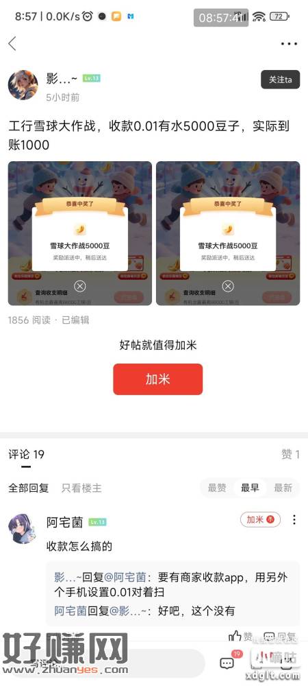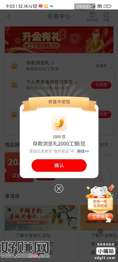 工行雪球大作战,全部任务做完,最后一抽貌似必5000豆,实给1000豆,可以翻看昨晚其他人发的,下面图附上还有任务中心存款浏览礼,中2000豆