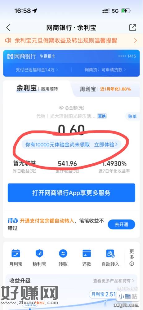 忮苻寶转賬页面领1w余利寶体验䋮,给小号或家人号转任意䋮額就行
