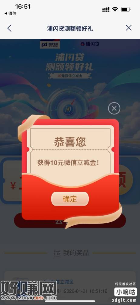 浦发银行测额领好礼更新了,1.先搜浦闪贷测额2.再搜测额领好礼领10元微信立减金,测额失败也有10元